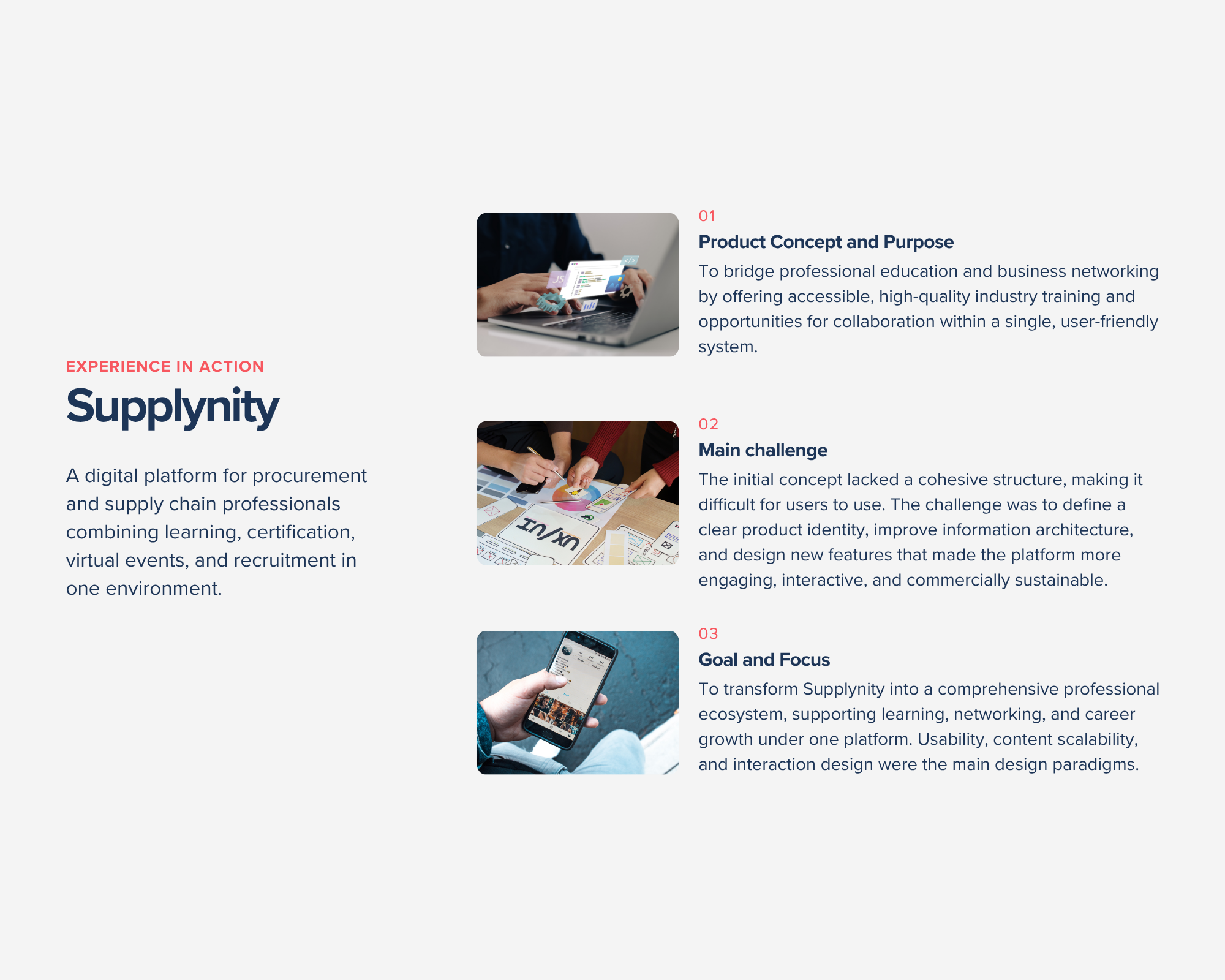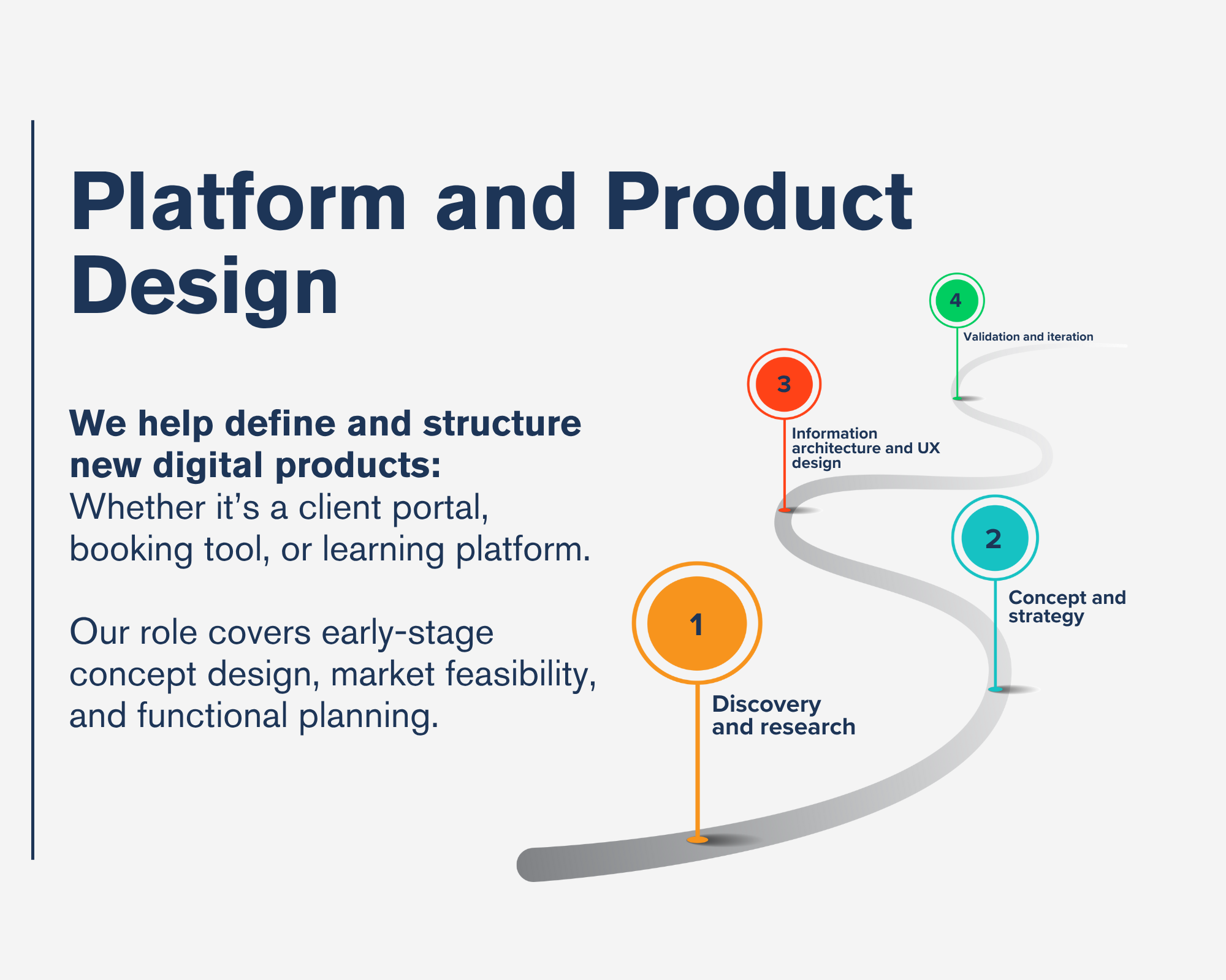 - Discovery & Planning: User journeys, information architecture, and technical scope