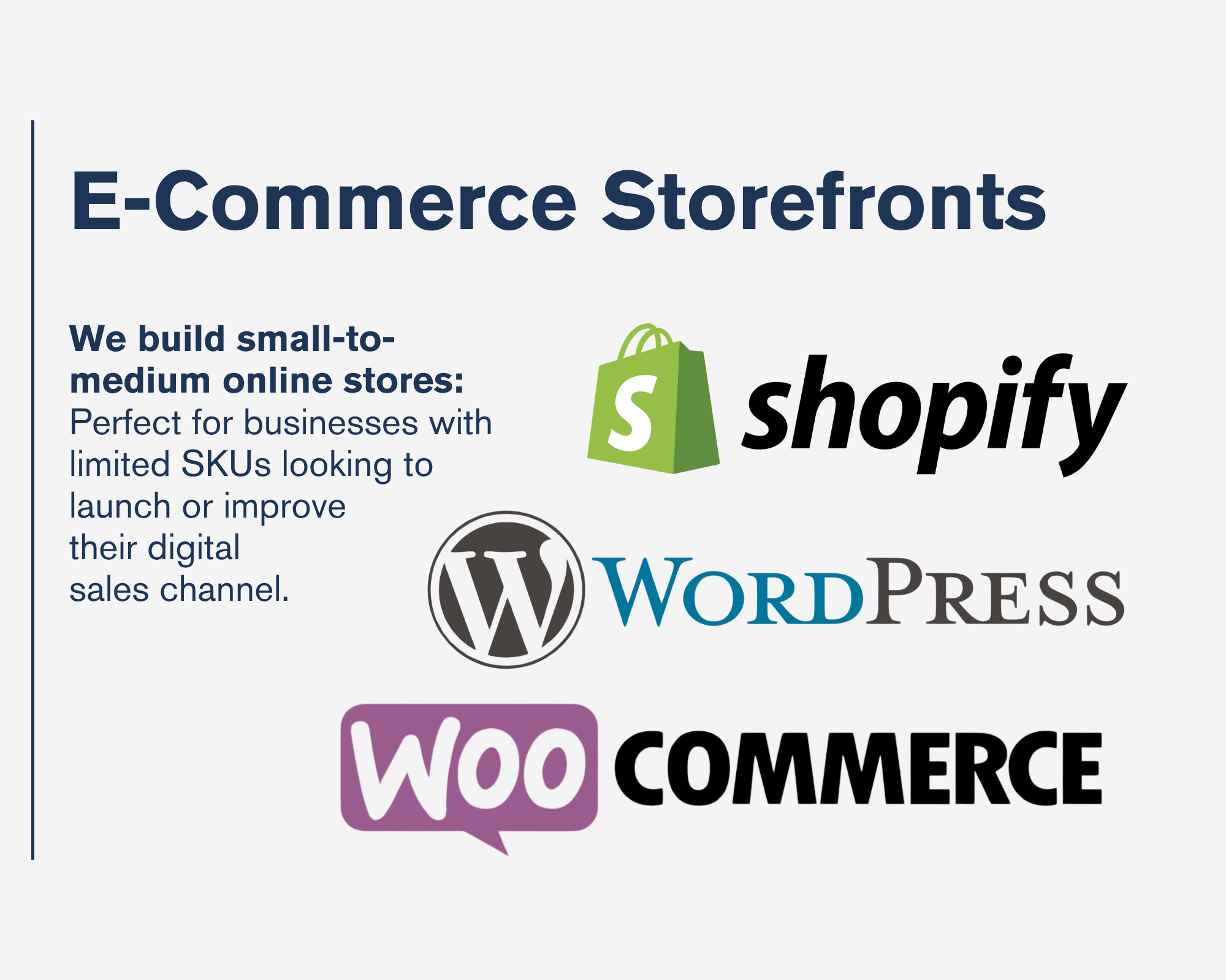 Whether you need the full package or just one specific service, you can start where it makes sense. We tailor each setup to your business goals, timeline, and budget.