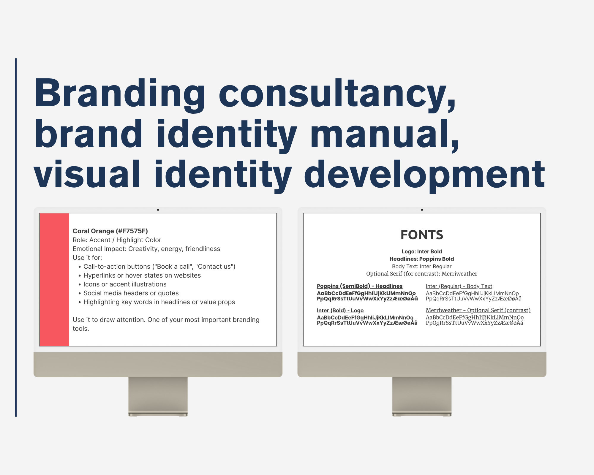 - Visual Identity Development: Logo design, color systems, typography guidelines